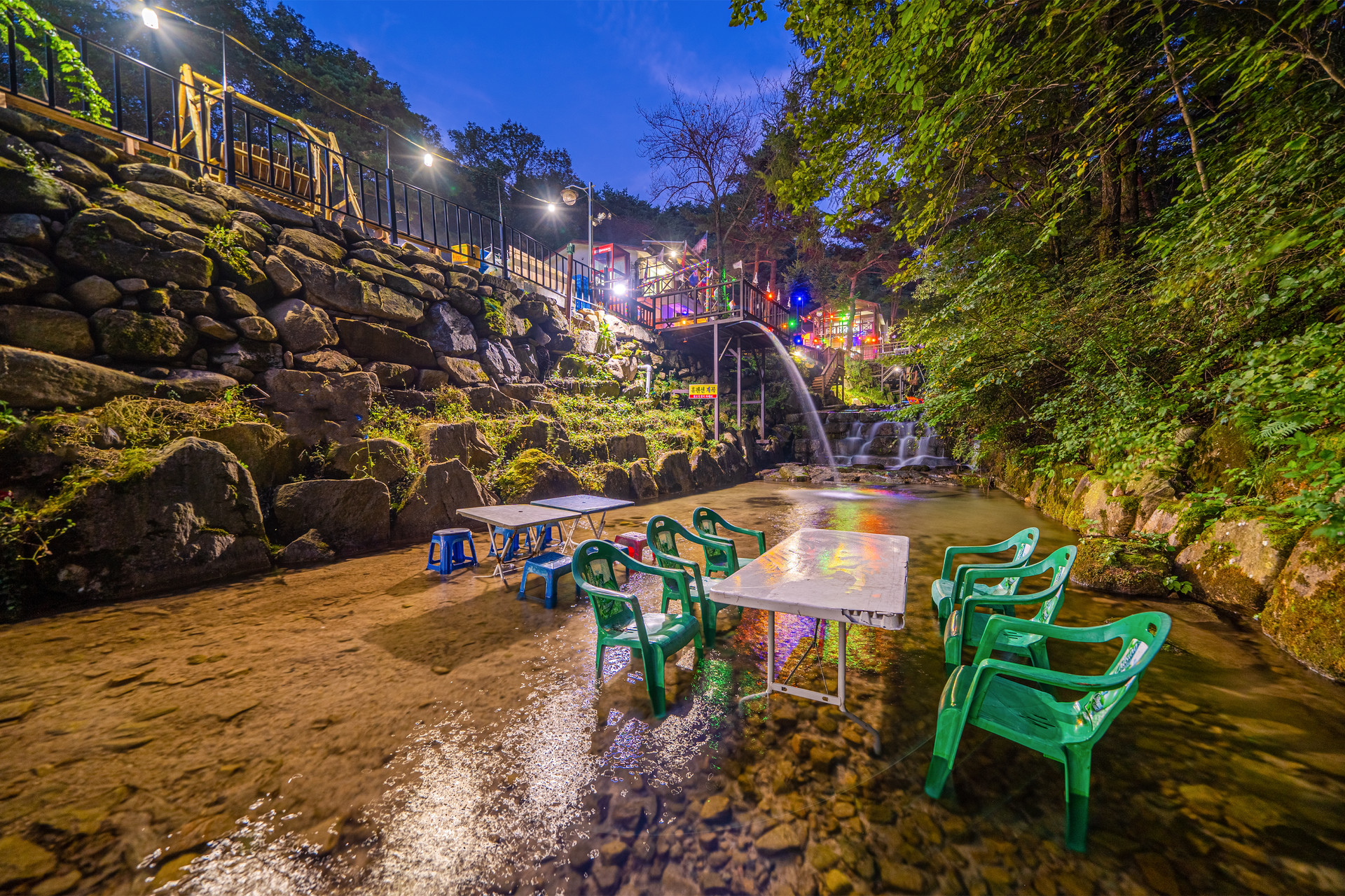 조령산 맑은 물이 흐르는 펜션 앞,