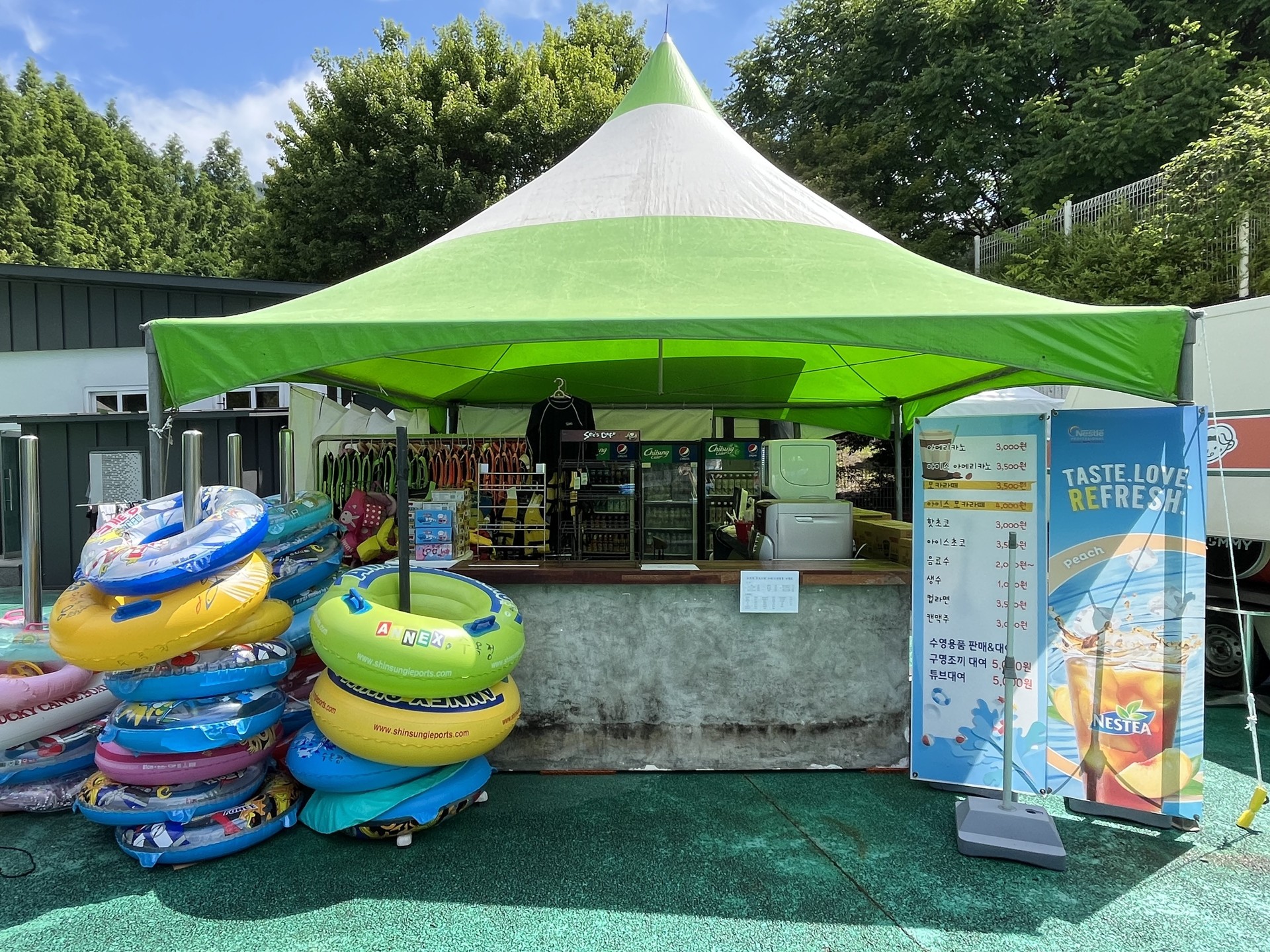 놀이기구와 함께 매점, 수영복 대여